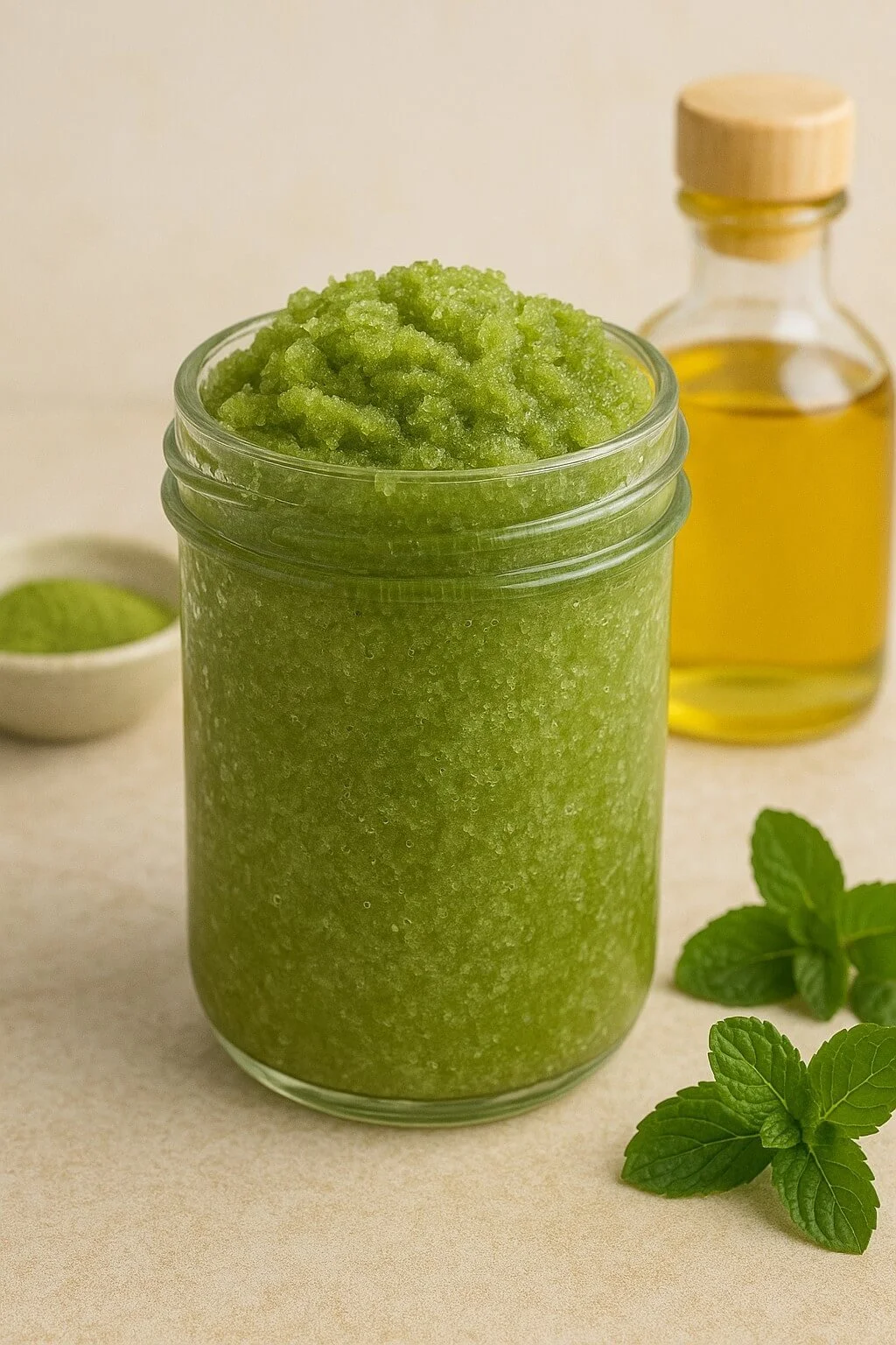 Homemade Sugar Foot Scrub With Matcha Green Tea