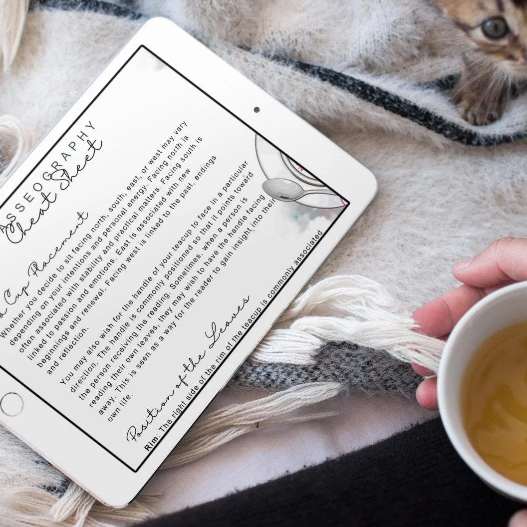 This cheat sheet includes tea cup symbolism, leaf placement meanings, and tips for getting the clearest insights from your cup. All in a minimal, elegant design that’s as beautiful as it is useful.